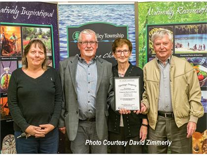 During the 75 years that Walter and Isobel Cameron owned the property, it was the social and economic focus for the hamlet and greater Fallbrook community. Isobel managed the adjacent general store, and Walter became widely known for his skills as a blacksmith, wood carver, and raconteur. In the early years, he also donned the hats of barber, dentist, and veterinarian. His wood carving tools were donated to Tay Valley Township in 2013 by a member of the Ottawa wood carvers’ association, in the presence of his son, Graham, and are on display at the Township municipal offices.
